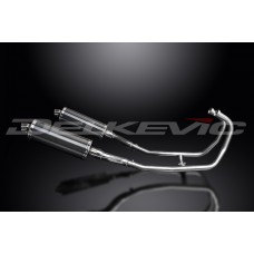 • This set includes - Delkevic down pipes, link pipes, silencers with removable baffles, straps, clamps, and gaskets.