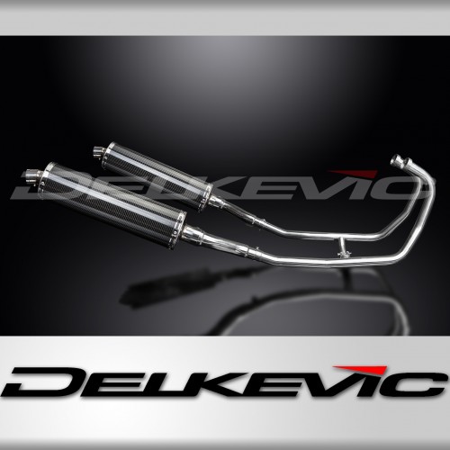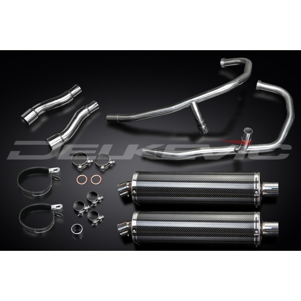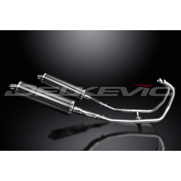 KAWASAKI GPZ500S FULL 2-2 EXHAUST SYSTEM 450mm CARBON OVAL BSAU SILENCERS