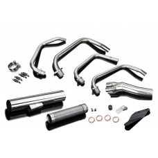 - This set includes - Delkevic down pipes, Classic style silencer with a removable baffle, clamp, gaskets, brackets, stand stop rubber, spring hooks, nyloc nuts, washers, and cap screws.