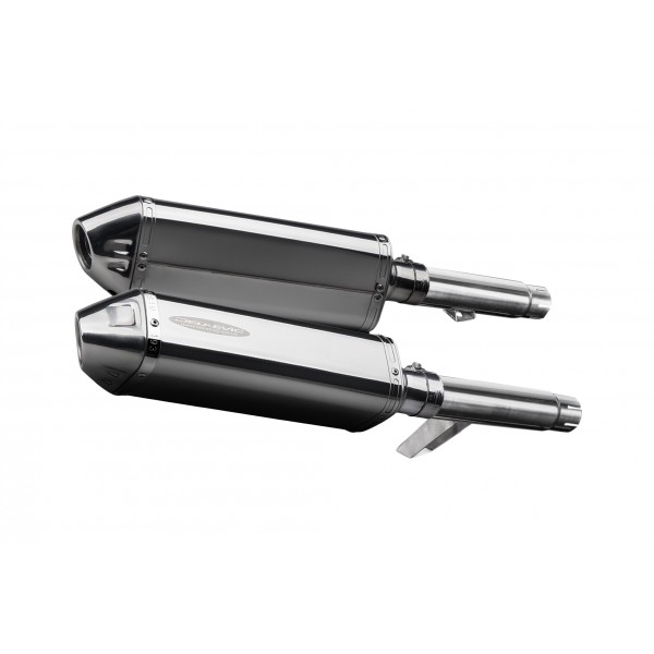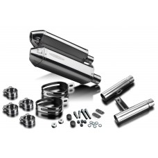 • This set includes - Delkevic silencers with removable baffles, link pipes, straps, clamps, washers, cap screws, nyloc nuts, stand stop rubbers, and brackets.