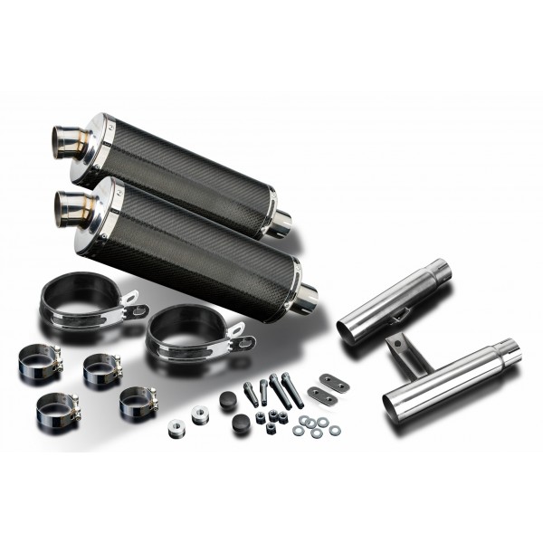 • This set includes - Delkevic silencers with removable baffles, link pipes, straps, clamps, washers, cap screws, nyloc nuts, stand stop rubbers, and brackets.