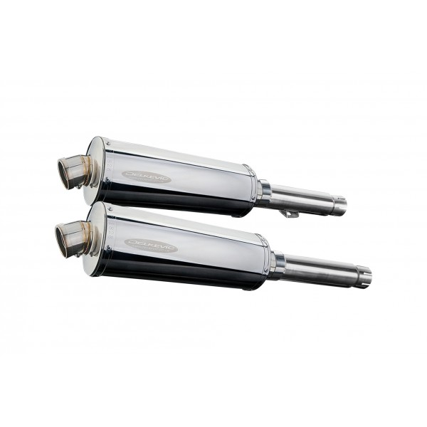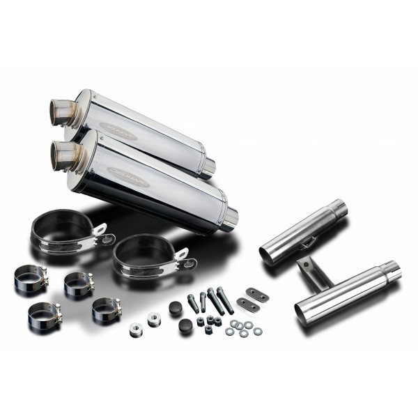 • This set includes - Delkevic silencers with removable baffles, link pipes, straps, clamps, washers, cap screws, nyloc nuts, stand stop rubbers, and brackets.
