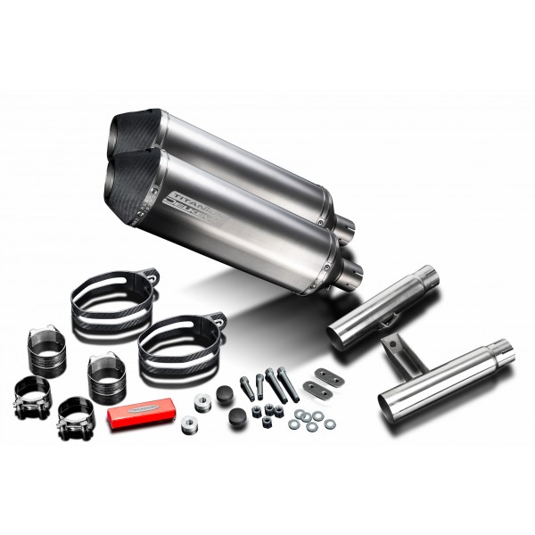 • This set includes - Delkevic silencers with removable baffles, link pipes, straps, clamps, washers, cap screws, nyloc nuts, stand stop rubbers, and brackets.