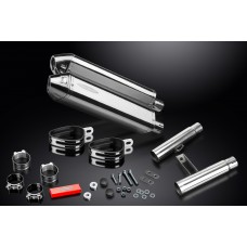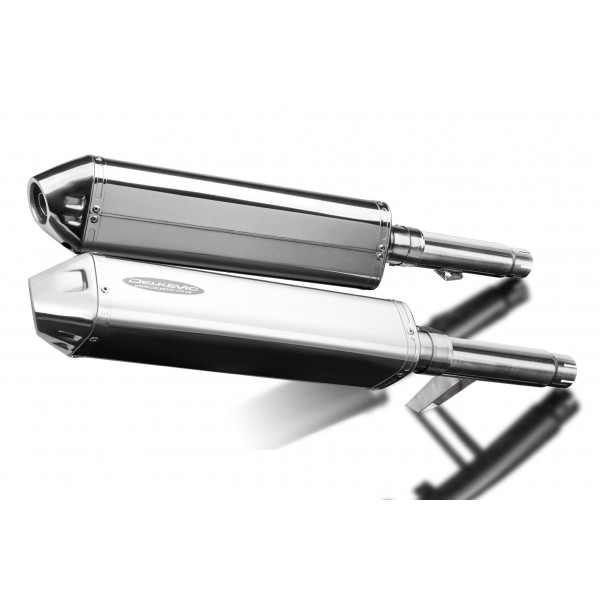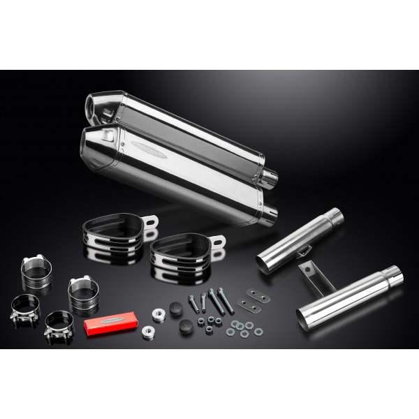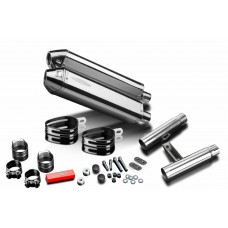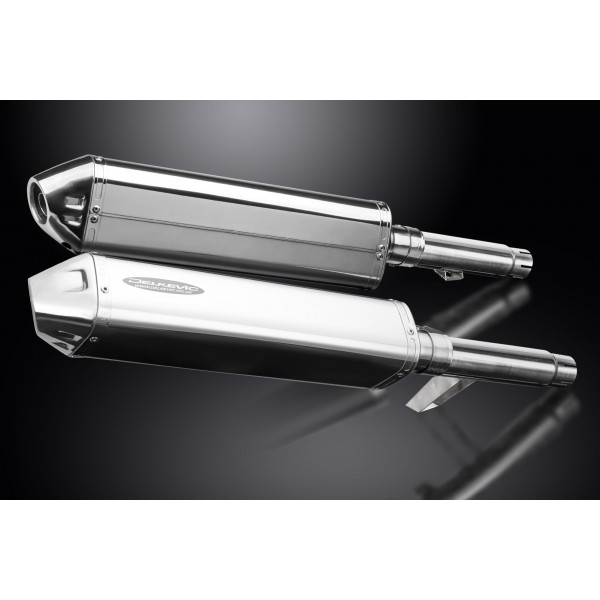 • This set includes - Delkevic silencers with removable baffles, link pipes, straps, clamps, washers, cap screws, nyloc nuts, stand stop rubbers, and brackets.