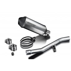 • This set includes - Delkevic silencer with a removable baffle, link pipe, clamps, and strap.