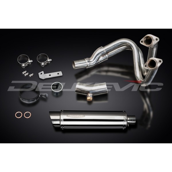 • This set includes - Delkevic down pipes, link pipe, silencer with a removable baffle, strap, clamps, bracket, cap screws, nyloc nuts, and washers.