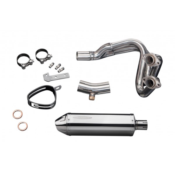 • This set includes - Delkevic down pipes, link pipe, silencer with a removable baffle, strap, clamps, gaskets, brackets, cap screws, washers, and nyloc nuts.
