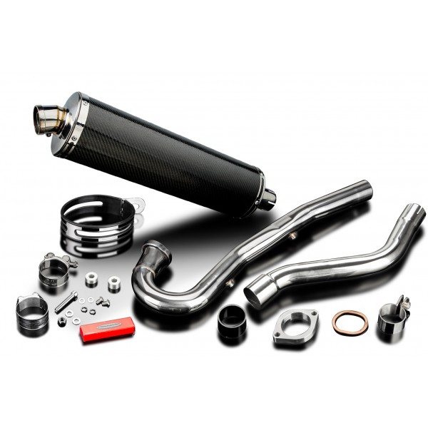 Tags: kawasaki, klr600, kl600, 1985-1994, complete, exhaust, 450mm, oval, carbon, silencer, can, COM08GS