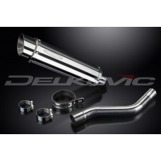 • This set includes - Delkevic silencer with a removable baffle, link pipe, strap, and clamps.
