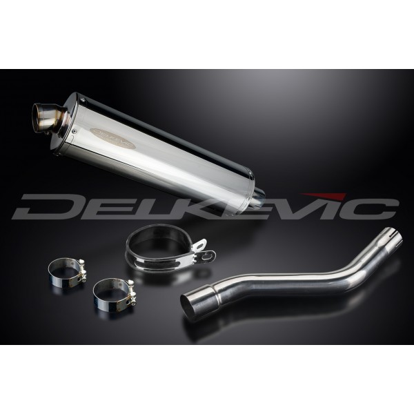 • This set includes - Delkevic silencer with a removable baffle, link pipe, strap, and clamps.