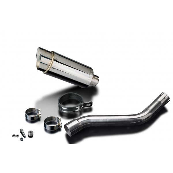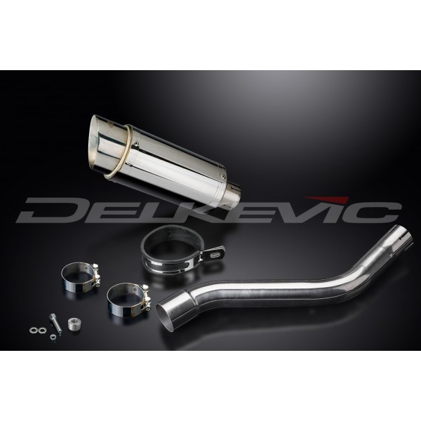 • This set includes - Delkevic silencer with a removable baffle, link pipe, strap, and clamps.