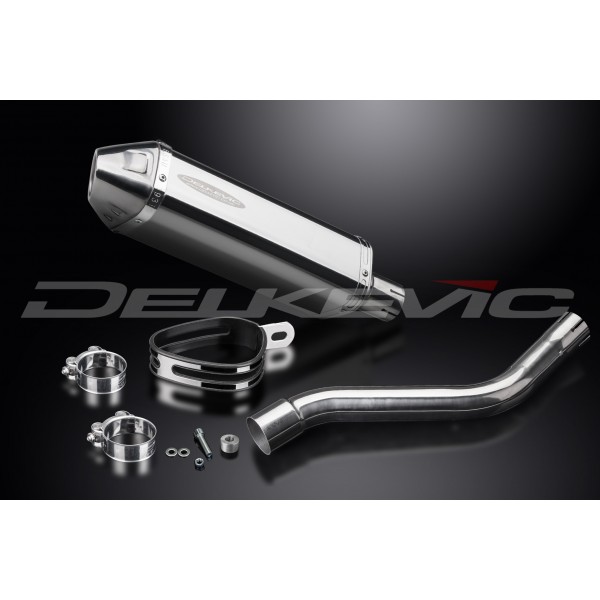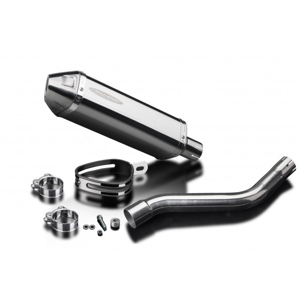 • This set includes - Delkevic silencer with a removable baffle, link pipe, strap, and clamps.