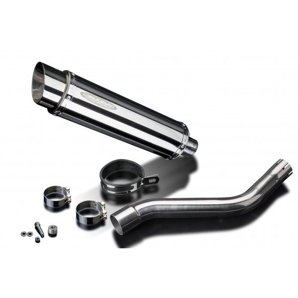 • This set includes - Delkevic silencer with a removable baffle, link pipe, strap, and clamps.
