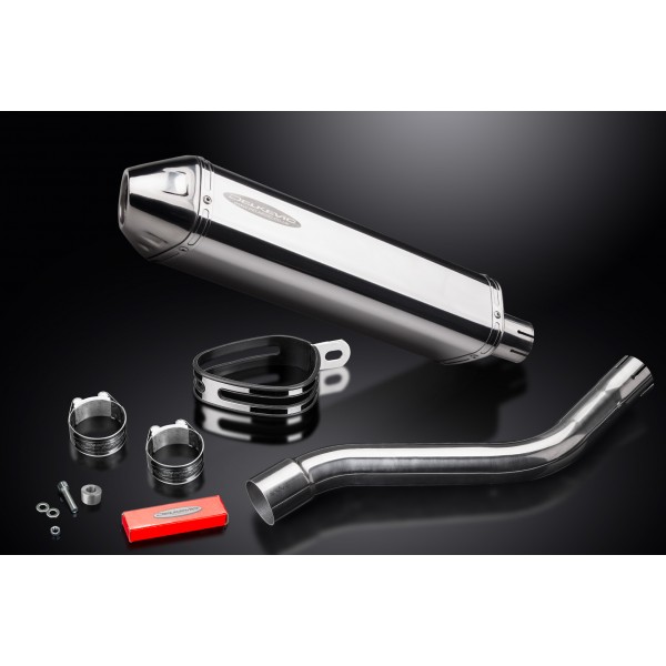 • This set includes - Delkevic silencer with a removable baffle, link pipe, strap, and clamps.