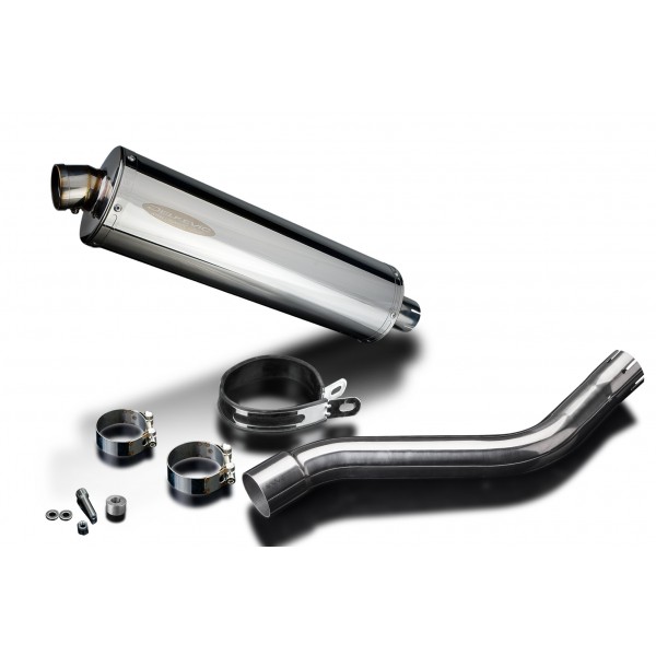 • This set includes - Delkevic silencer with a removable baffle, link pipe, strap, and clamps.