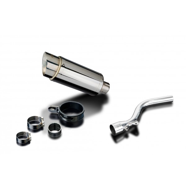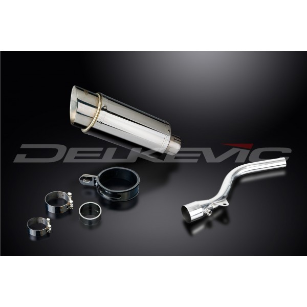 • This set includes - Delkevic silencer with a removable baffle, link pipe, strap, clamps, and gasket.
