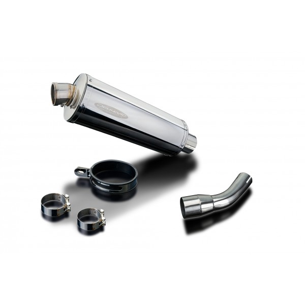 • This set includes - Delkevic silencer with a removable baffle, link pipe, strap, and clamp.