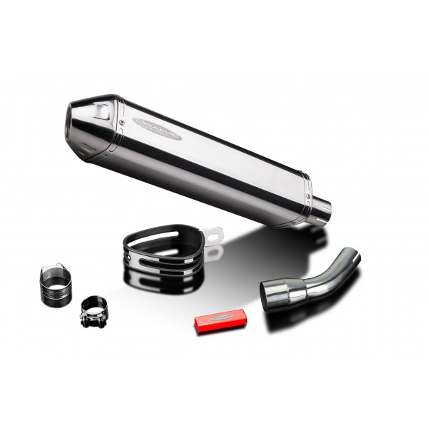 • This set includes - Delkevic silencer with a removable baffle, link pipe, strap, and clamp.