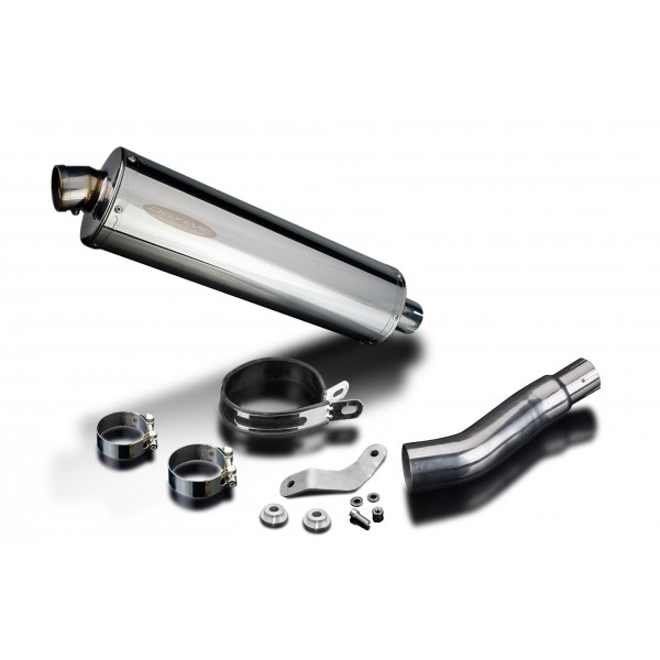 • This set includes - Delkevic silencer with a removable baffle, link pipe, strap, and clamps.