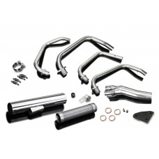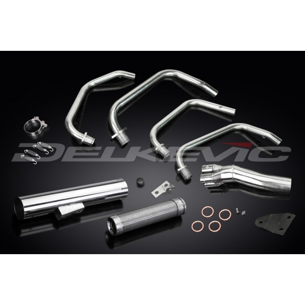 • This set includes - Delkevic down pipes, Classic style silencer with a removable baffle, clamp, gaskets, brackets, stand stop rubber, spring hooks, nyloc nuts, washers, and cap screws.