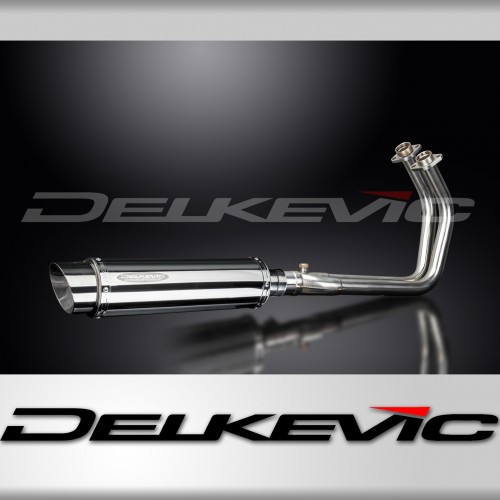 • This set includes - Delkevic down pipes, silencer with a removable baffle, strap, clamp, gaskets, nyloc nut, washers, long cap screw, and spacer.