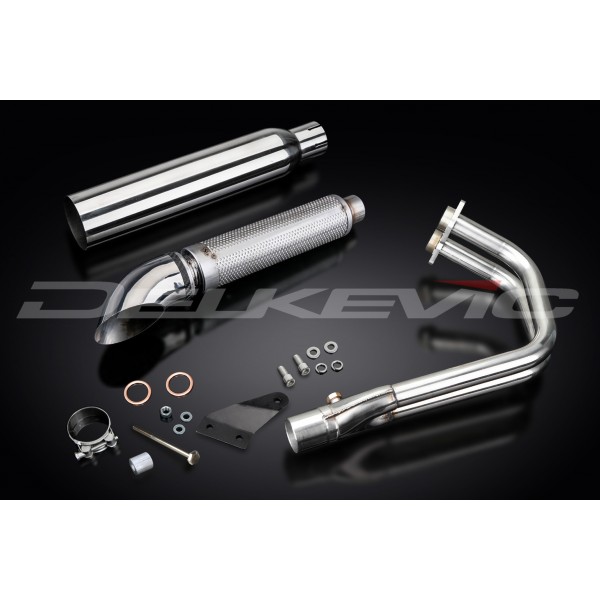 • This set includes - Delkevic down pipes, custom silencer with a removable baffle, clamp, bracket, and fixings.