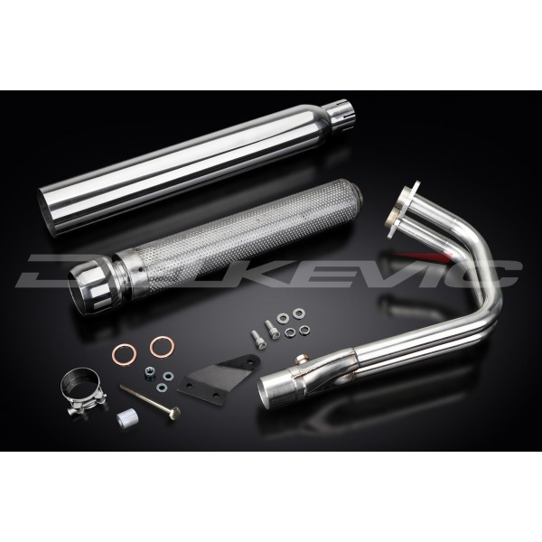 • This set includes - Delkevic down pipes, custom silencer with a removable baffle, clamp, bracket, and fixings.