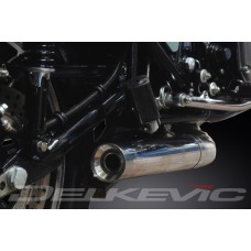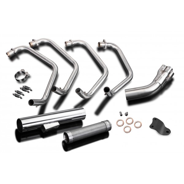 • This set includes - Delkevic down pipes, Classic style silencer with a removable baffle, clamp, gaskets, bracket, spring hooks, spring puller, nyloc nuts, washers, and cap screws.