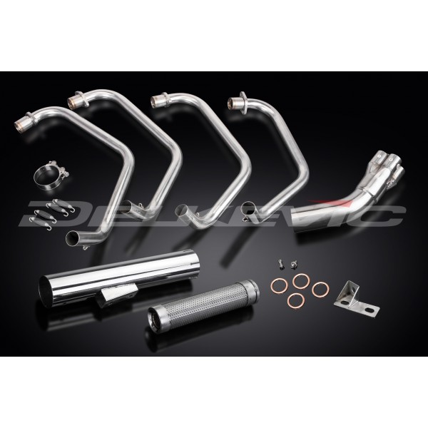 • This set includes - Delkevic down pipes, Classic style silencer with a removable baffle, clamp, gaskets, bracket, spring hooks, nyloc nuts, washers, and cap screws.