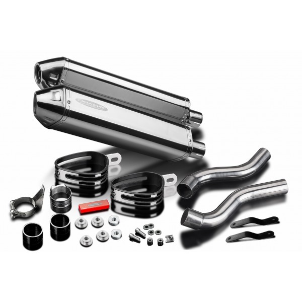 • This set includes - Delkevic silencers with removable baffles, link pipes, straps, clamps, and heat shield.
