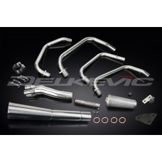 • This set includes - Delkevic down pipes, Classic style silencer with a removable baffle, clamp, gaskets, brackets, stand stop rubber, spring hooks, nyloc nuts, washers, and cap screws.
