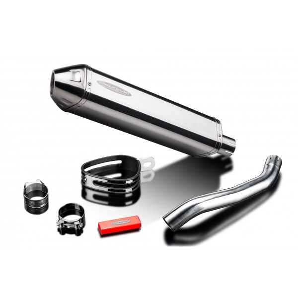 • This set includes - Delkevic silencer with a removable baffle, link pipe, strap, and clamps.