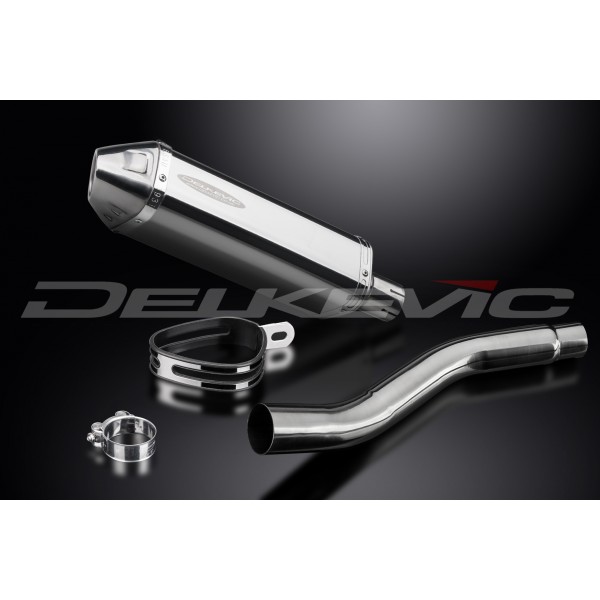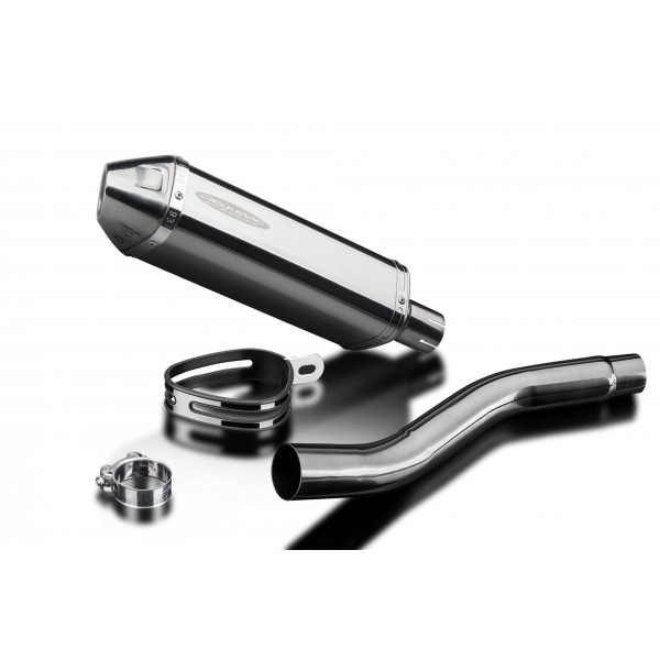• This set includes - Delkevic silencer with a removable baffle, link pipe, strap, and clamp.