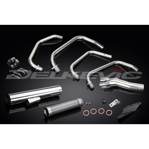 • This set includes - Delkevic down pipes, Classic style silencer with a removable baffle, clamp, gaskets, brackets, stand stop rubber, spring hooks, nyloc nuts, washers, and cap screws.