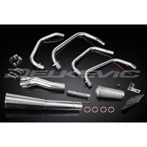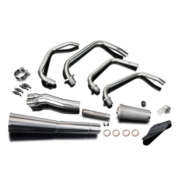 - This set includes - Delkevic down pipes, Classic style silencer with a removable baffle, clamp, gaskets, brackets, stand stop rubber, spring hooks, nyloc nuts, washers, and cap screws.