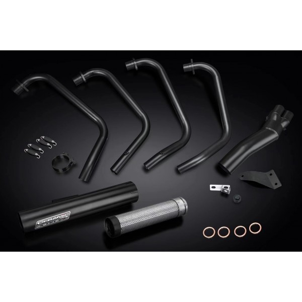 • This set includes - Ceramic coated Delkevic downpipes, classic style ceramic coated straight silencer, and bracket..
