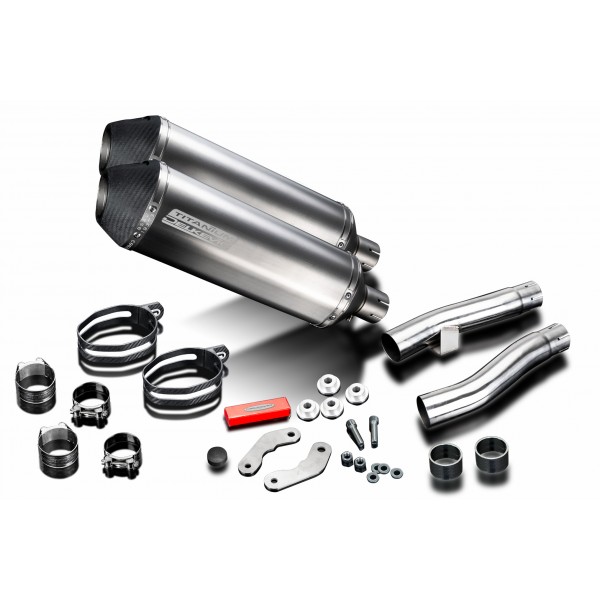 • This set includes - Delkevic silencers with a removable baffle, link pipes, silencer straps, brackets, gaskets, washers, cap screws, stand stop rubber, nyloc nuts, and clamps.