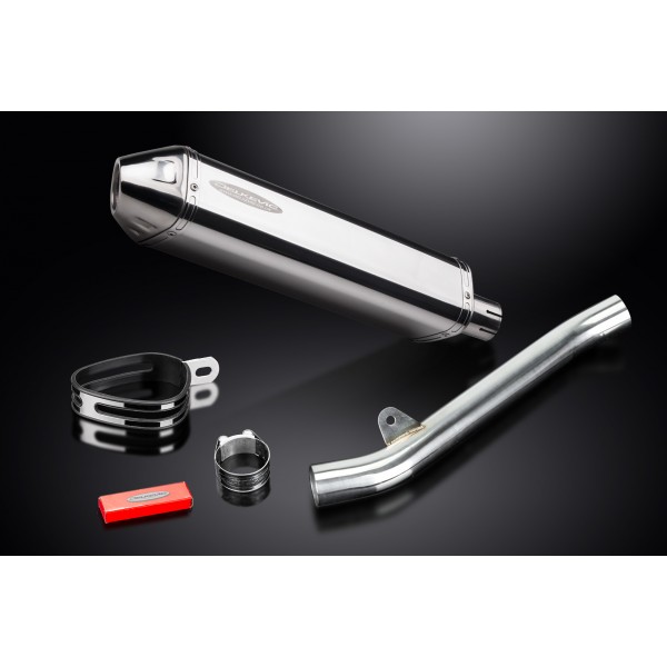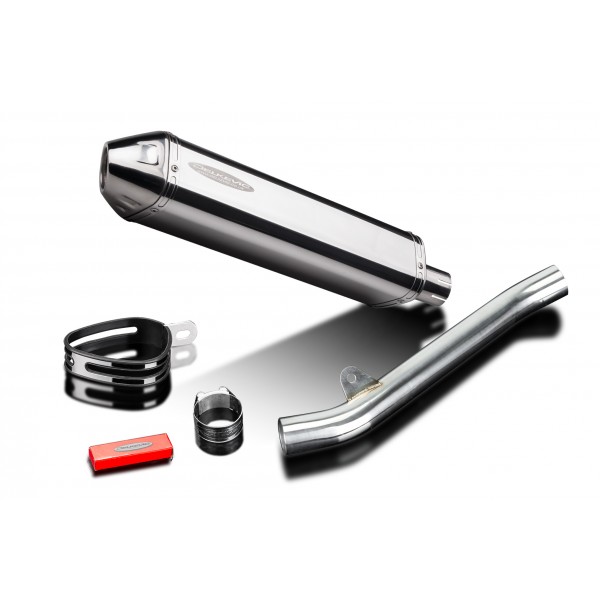 • This set includes - Delkevic silencer with a removable baffle, de-cat link pipe, strap, nyloc nut, washer, gasket, and clamps.