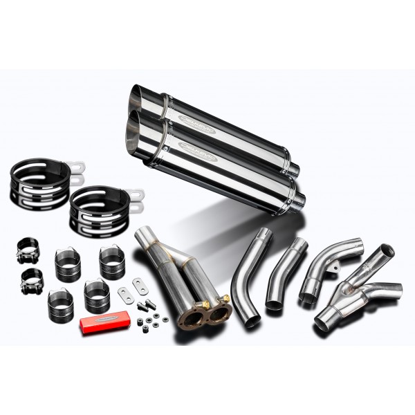 • This set includes - Delkevic silencers with removable baffles, link pipes, straps, clamps, and brackets.