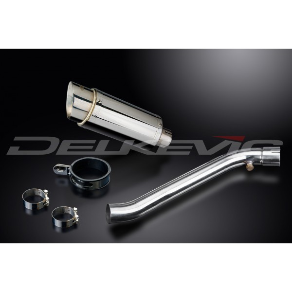 • This set includes - Delkevic silencer with a removable baffle, de-cat link pipe, clamps, and strap.