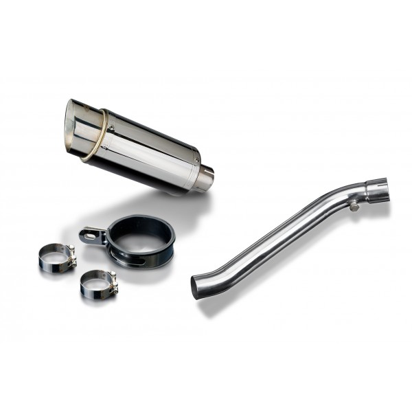 • This set includes - Delkevic silencer with a removable baffle, de-cat link pipe, clamps, and strap.