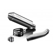 • This set includes - Delkevic silencer with a removable baffle, link pipe, clamps, and strap.
