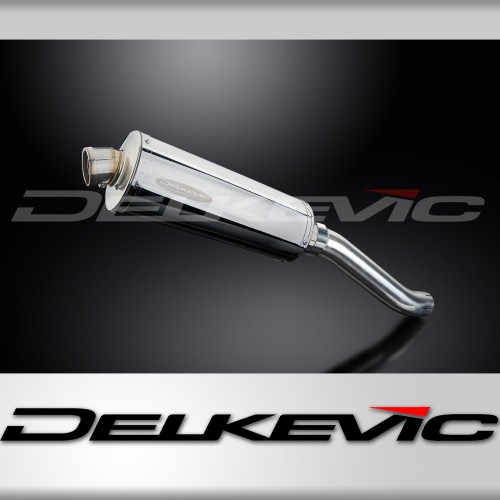 • This set includes - Delkevic silencer with a removable baffle, link pipe, clamps, and strap.