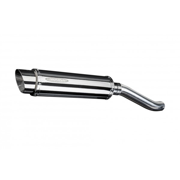 • This set includes - Delkevic silencer with a removable baffle, link pipe, clamps, and strap.