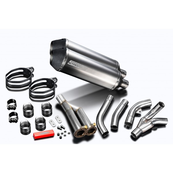 • This set includes - Delkevic silencers with removable baffles, link pipes, straps, clamps, and brackets.