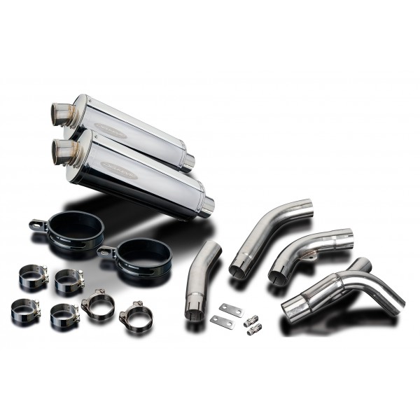 • This set includes - Delkevic silencers with removable baffles, link pipes, straps, clamps, and brackets.