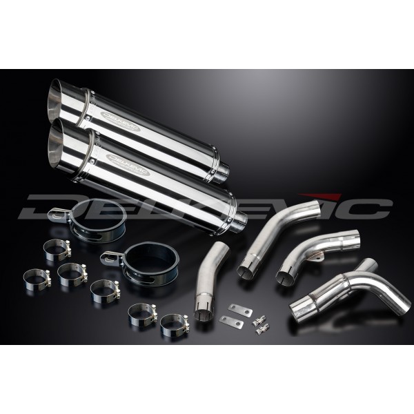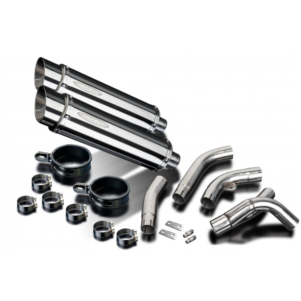 • This set includes - Delkevic silencers with removable baffles, link pipes, straps, clamps, and brackets.