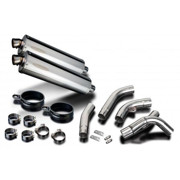 • This set includes - Delkevic silencers with removable baffles, link pipes, straps, clamps, and brackets.