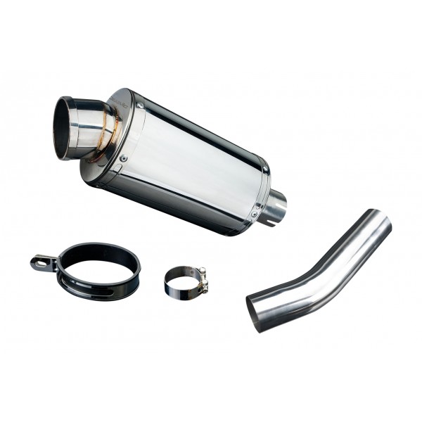 • This set includes - Delkevic silencer with a removable baffle, link pipe, strap, and clamp.
