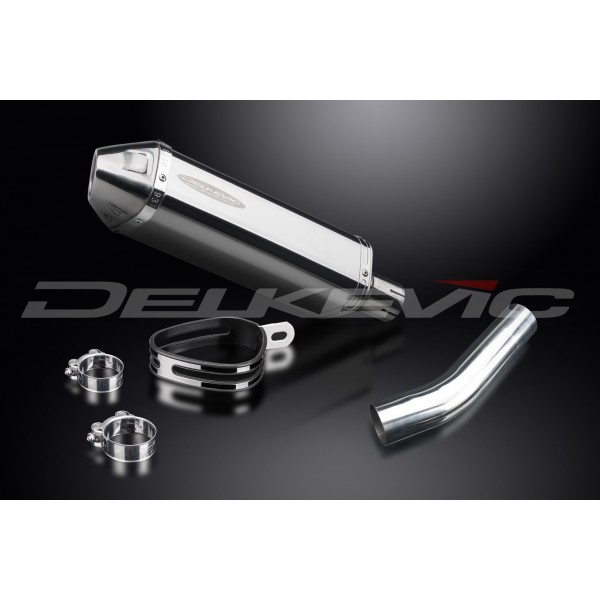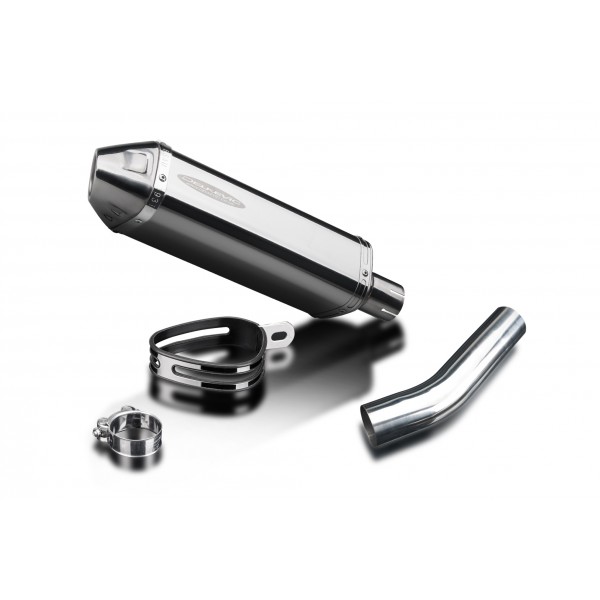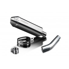 • This set includes - Delkevic silencer with a removable baffle, link pipe, strap, and clamp.